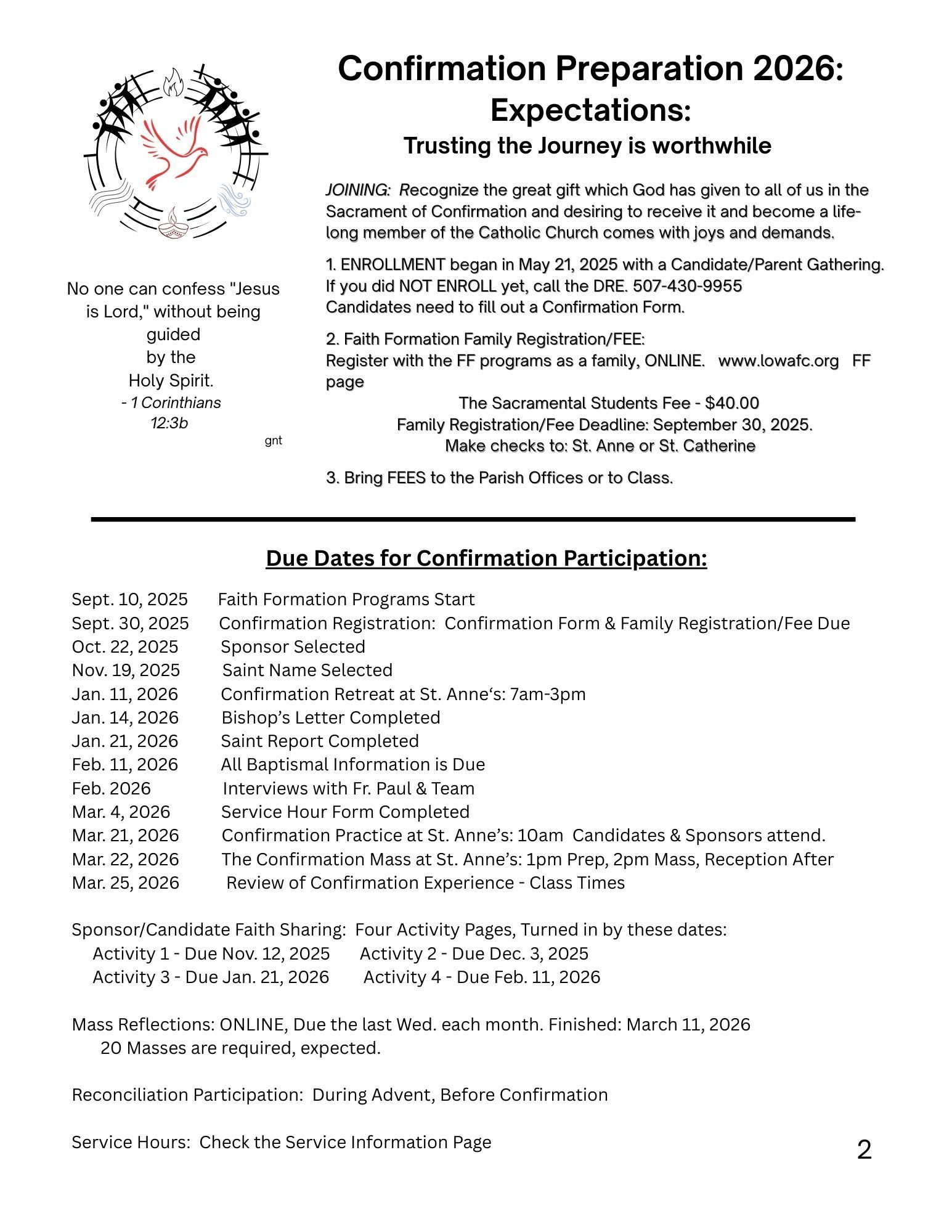 REMINDERS FOR CONFIRMATION STUDENTS 1/14/26